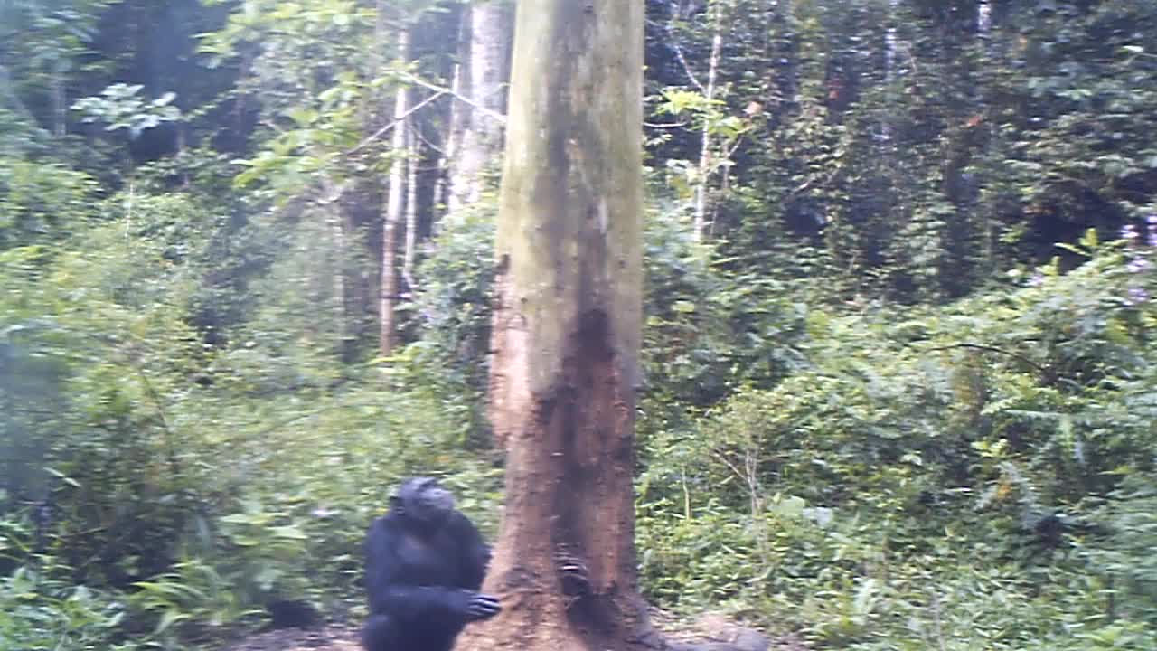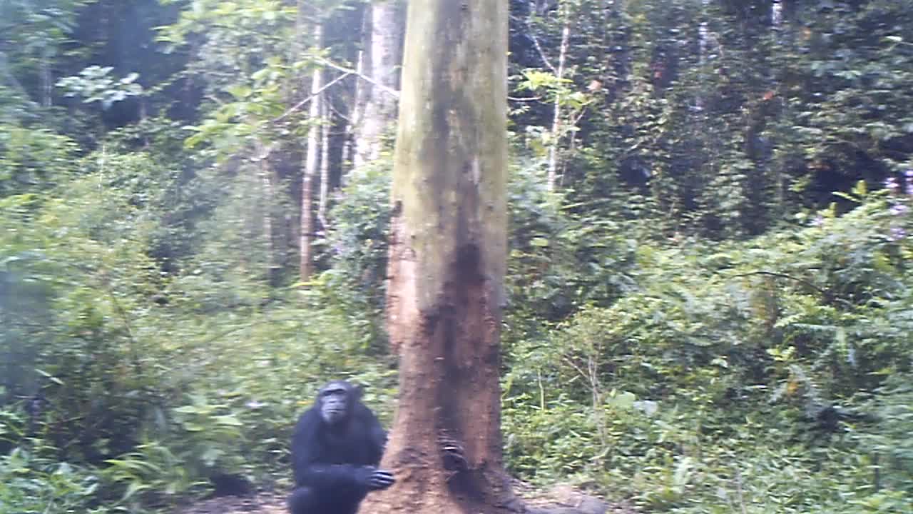 This camera shows another community indicated by the Ngogo researchers following them. So for our Green Snowflake chimps this is foreign territory. A mother wouldn´t carry her child through it and Petra wouldn´t sit on the ground in full daylight.
